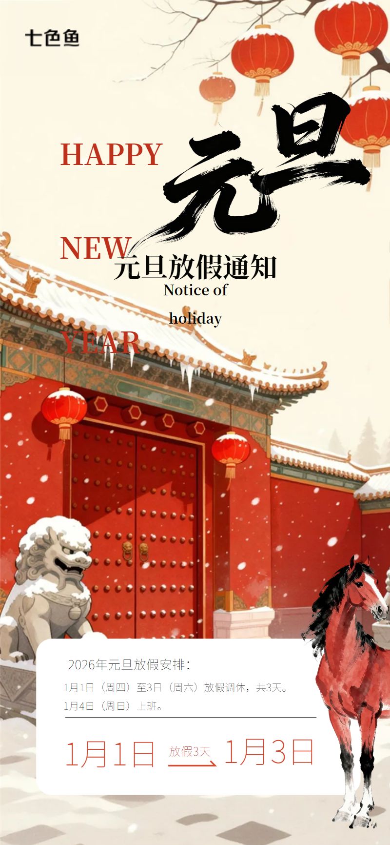 2026年元旦放假通知海报